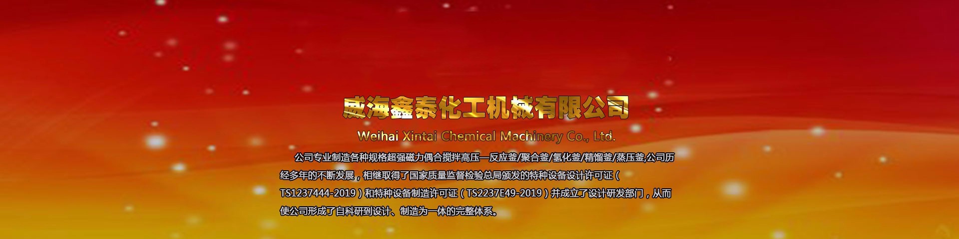威海鑫泰化工機(jī)械有限公司位于山東威海,本公司專業(yè)制造銷售各種規(guī)格高壓反應(yīng)釜、磁力反應(yīng)釜、不銹鋼高壓釜、不銹鋼反應(yīng)釜、強(qiáng)磁力偶合攪拌反應(yīng)釜及與其配套的壓力罐、冷凝器、塔器等,其結(jié)構(gòu)形式、高中低壓、加熱方式、攪拌形式、轉(zhuǎn)速變化均可按標(biāo)準(zhǔn)或按用戶工藝要求進(jìn)行選配定制,廠家直銷,產(chǎn)品價格低,型號全。